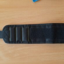 Wonderful wristband. The quality is excellent, well holds metal scissors, knives, all sorts of screwdrivers. Now you do not have to keep anything in your teeth.