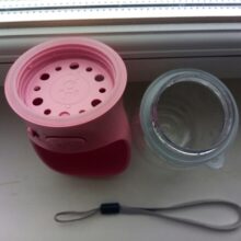 I have a big dog so I was a little worried this would be too small, but he loves it! I just wish there was a latch so I could clip it to his leash. I do have to bring an extra water bottle to refill it, but that’s just because I have a big dog who drinks a lot of water.