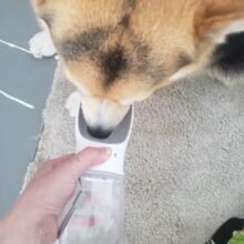 This is just perfect for those times when you are mobile with your pets. Both of our fur babies took right to it and the container provides plenty of water for both dogs. Easy to use, no wasted water, just simply press a button and water flows out easily. No more drinking from our water bottles, great for the environment too!